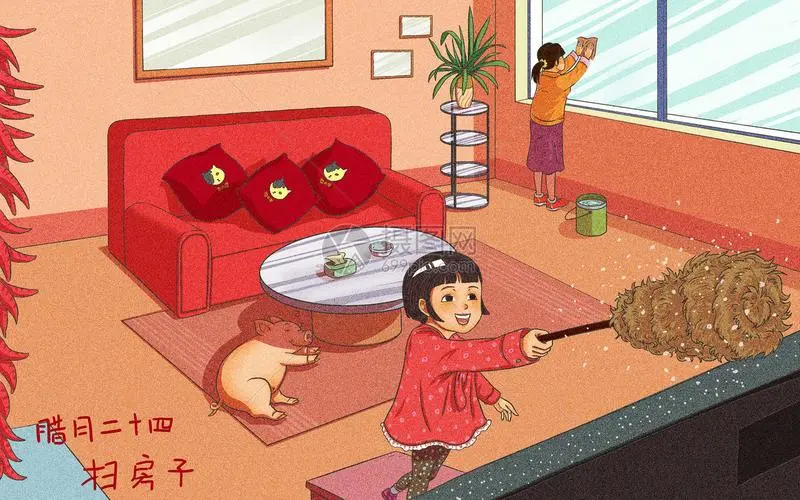 中国自古以来就有过年大扫除的习俗。每年春节前,中国家庭都会清理自己的房屋、电器、床上用品和窗帘。由于“尘”字在汉语中与“旧”谐音,人们希望通过打扫来驱走厄运或旧物。这一习俗体现了中国人破旧立新的愿望。